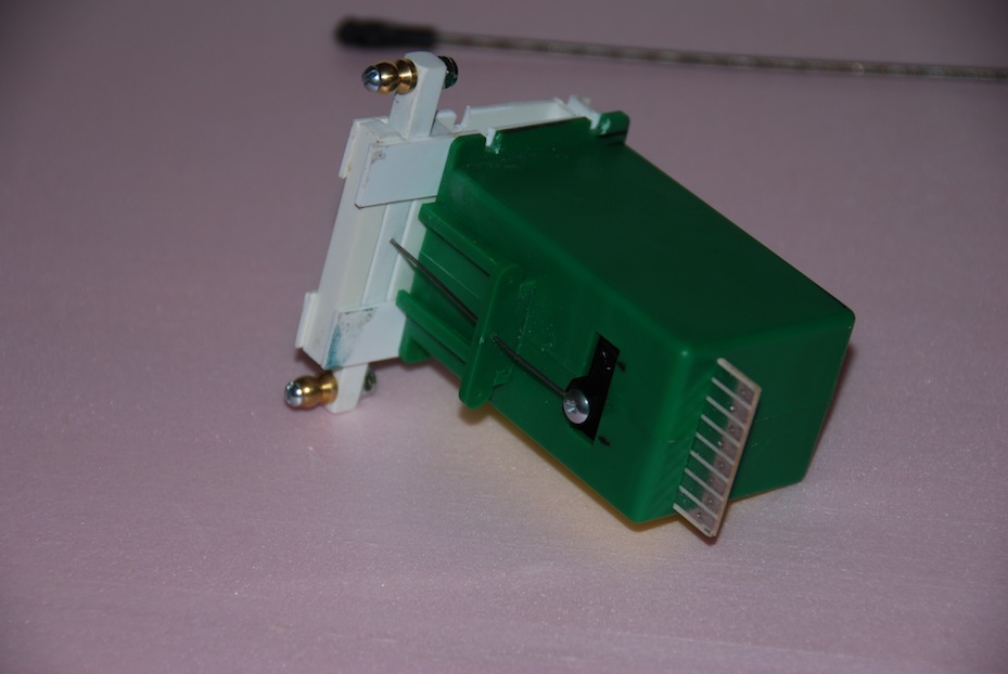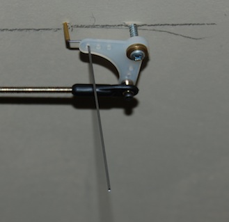 The points shift freely, and the Tortoise and connection rod have enough throw, but when I activate the Tortoise only one set of points is thrown all the way. The other set is left in the middle of the throw. When I get back to the layout I'm going to try moving the connecting rods from the Tortoise to the inside position of the bell-crank horns (closer to the pivot). If my thinking is correct, this should give me more throw.