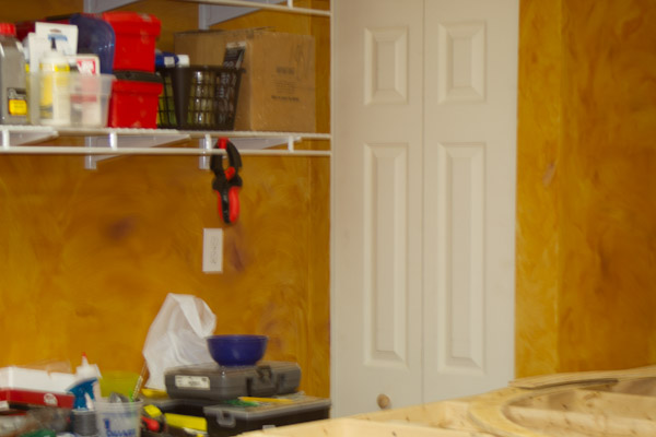 Here are some photos of the room in regards to the sump closet... as you can see, the sump hole is hidden from sight in a closet. I used that wall to put shelves up to get some use out of that otherwise unusable space. I am against boxing that area in to where it would require ducking under the table to get to the sump closet (we all know those pumps don't last forever!)... I could probably angle in a bit and reduce the 30" aisle to 18-24" if a plan would require it, but while it pains me to lose space, I'd rather keep the access clear... anyway, here are the pics...