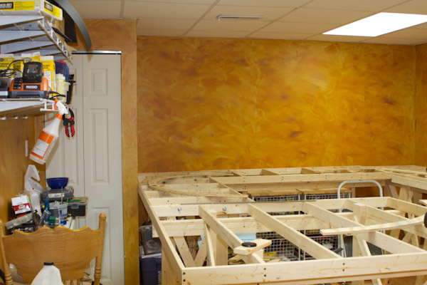 Mark: I wish I could have about 3 more feet (that space taken by the stupid sump hole...)... when we had the addition put on the house, the trainroom was "part of the equation"... it is in the basement in a nice finished off room with lots of lighting and a nice laminate floor I bought at a closeout store... the addition went out as far as it could based on the footprint of the land outside, and without the sump hole, the room would have been perfect (well always could go bigger, right?!?), but the building inspection said I had to have a sump hole... oh well, work with what you have I guess... I shouldn't complain, it *is* a nice space!