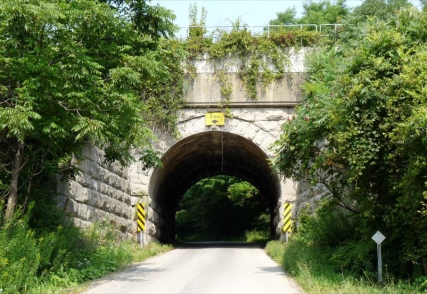 Just keep in mind there would have to be a legitimate reason for an arch, or for that matter a bridge, over anything, otherwise the road would be built on a fill. Many old rail lines would use wooden trestles to build a line and then cover them with fill.
