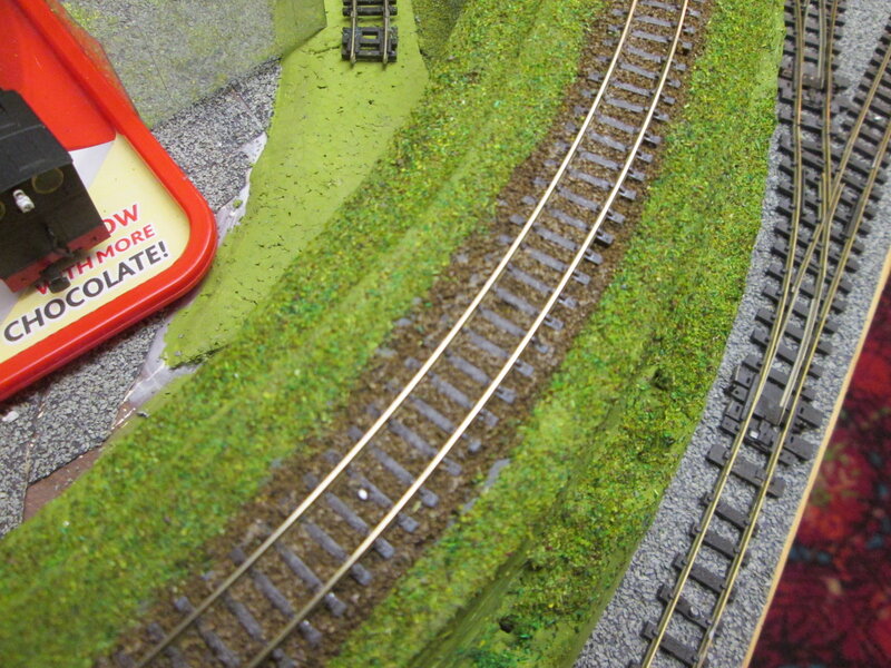 the incline idea was to use a 'inverted' helix , but the climb was to steep for the loco's , so a revised track plan was adopted and used larger radious curves ...