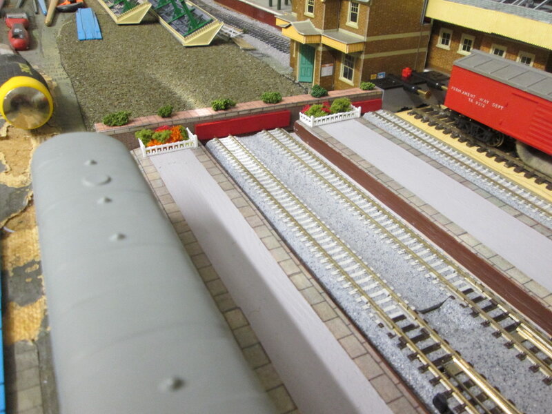the small gauge tourist line platform is shown below , and will be afixed once the track to the loco shed and incline have been fixed and ballasted .