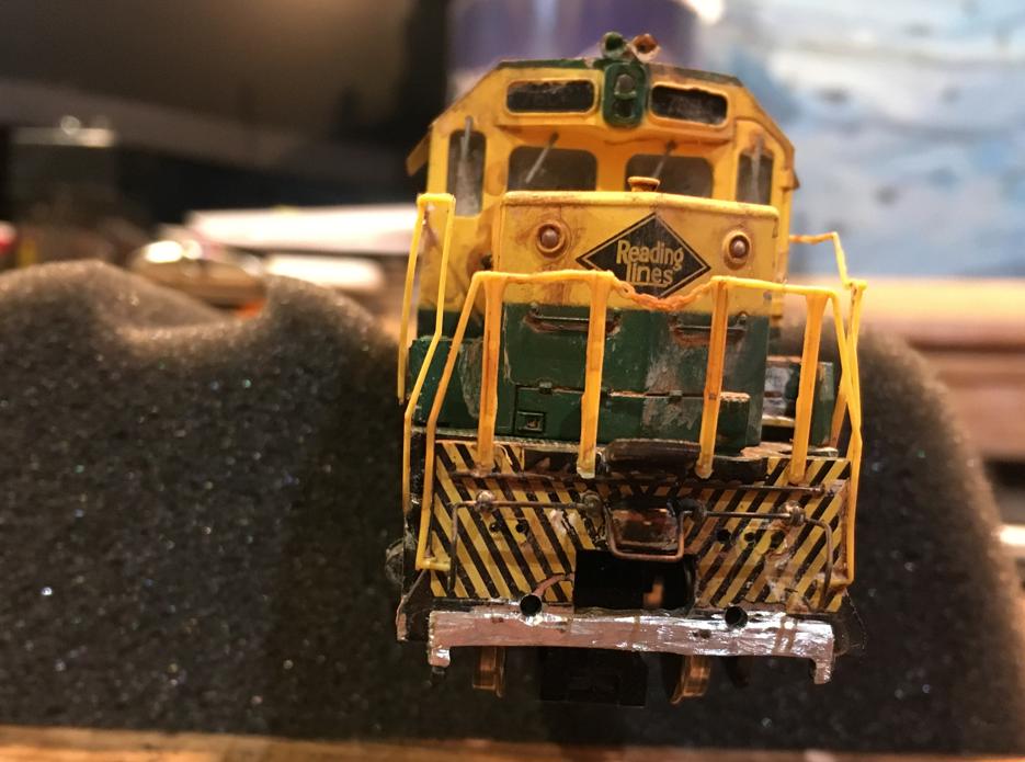 This little snowplow project led me to think about 5304 - a Stewart Hobbies C630 that's also on my roster.  It currently has no plow.  Did a little digging.  The Reading bought two orders of C630's from ALCo in the late 60's.  The second order, after looking at some pictures came complete with High AD trucks, the "Bee Line" logo and a snowplow.  I started thinking about adding a plow.  However, the first order (of which 5304 was one) didn't have any of these features - no plow.  My C630 is safe from potential mutilation!  Then I got to thinking.  That unit is tailor made for a Conrail patch job and has not been weathered...  something to think about for the future.  Anyway, I painted up the plow - a base coat of dark gray and then a bright yellow that I'll hit hard with rust and other weathering implements.  Once I get it about right, I'll mount it for good and reattach the MU hoses and coupler.  On another side note, on my search for SD45 details I ran into this guy's 3D print of an SD45 cab.  I've pinged him to see if he'll sell me one...  https://jlandtrailroad.blogspot.com/2021...ished.html