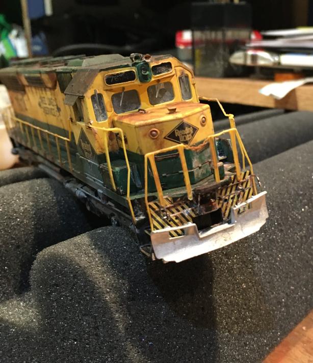 Beaten and abused...  I did use the fade technique with the Tamiya Flat Base - liked it!  Anyway, both of the SD45s are now no longer mint.