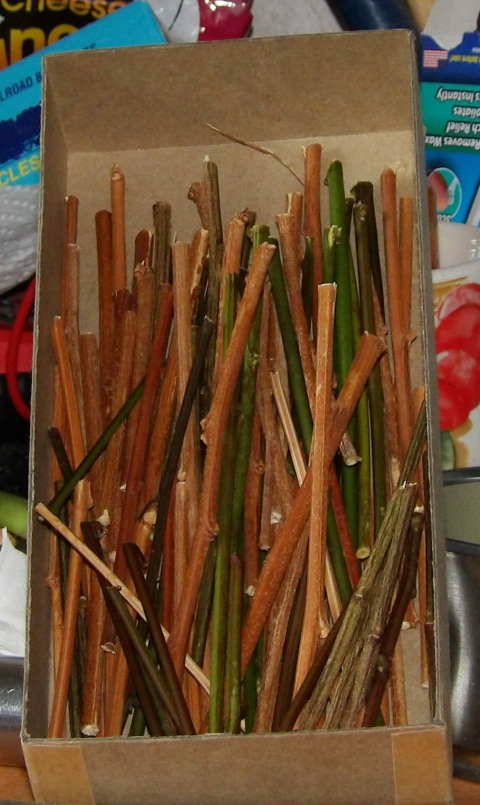 At first glance, I thought that I was looking at a box of rhubarb.  I was having visions of rhubarb pie, rhubarb jam and rhubarb muffins.  Ours is usually done quite early.