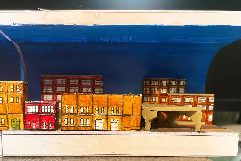 Buildings for the creek module. Keeping all the buildings on the far left relatively tall.