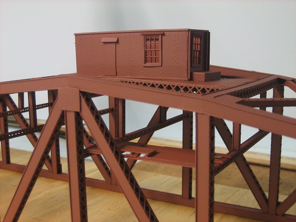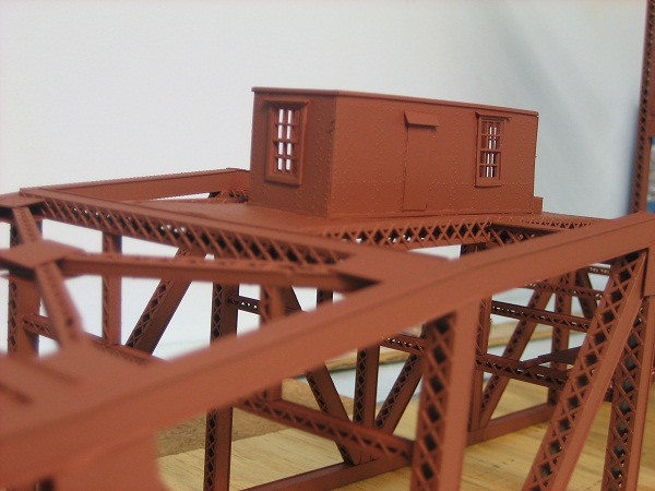 Well Gary , the way that work has bin going that may be possible. I hope the work picture is better for you in Texas, over here The shop is down to part time hours  . But, on a more pleasant note I am happy to finally show off some real progress. I added The tower/bridge tenders control room to the center of the move-able section. It's made from some styrene with windows and other plastic bits from my parts box. On a real bridge this would control the signals and derails on both approaches as well as the vertical motion of the lift section.