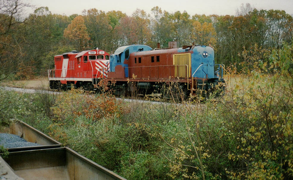 Southern RR of NJ RS3m 1548 and GP9 100 coming up from the interchange with Conrail at Winslow, NJ, October 1995.