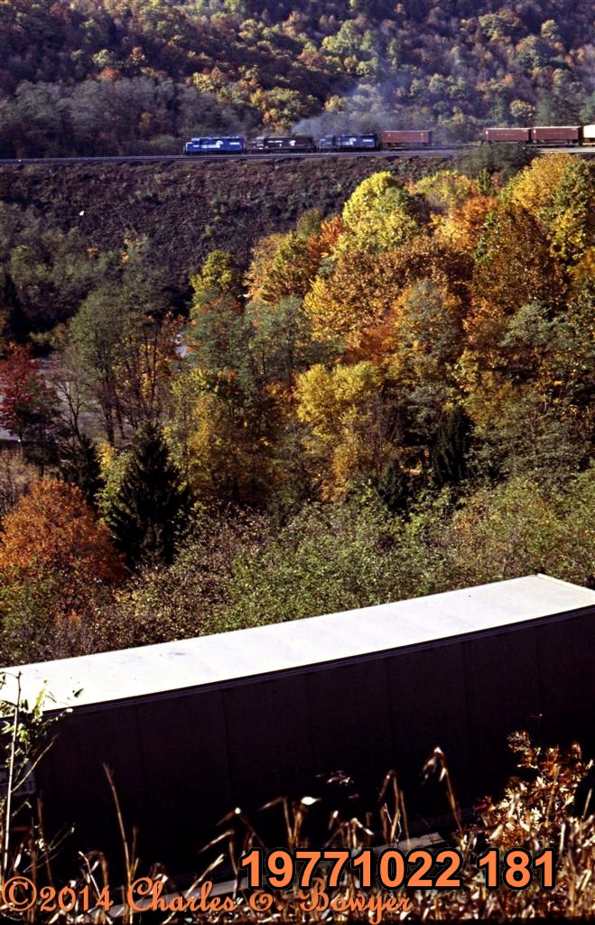 Another from Horseshoe Curve. 10/23/1977. We used to go and camp at Prince Gallitzin State Park and it was only a twenty minute drive to the curve. I would take our boys and  our daughter stayed with Mary and thy explored the park making friends.     Charlie