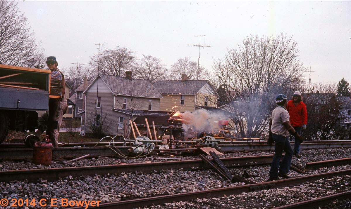 November, 1978. Thermit weld on the new welded rail through East Palestine, Ohio.     Charlie