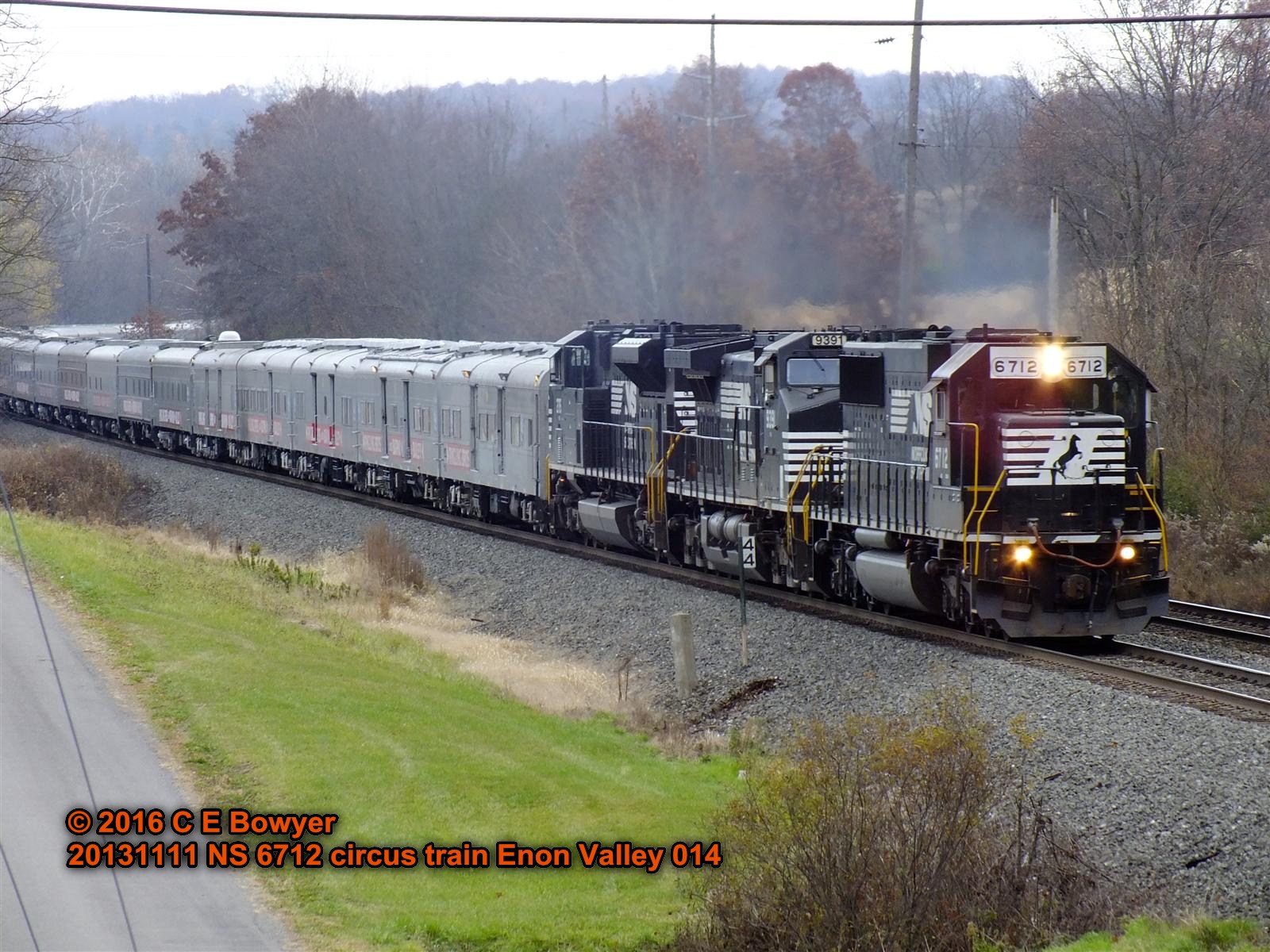 For many years you could count on seeing the circus train around Veterans Day, 2013 was typical. Westbound at Enon Valley.       Charlie