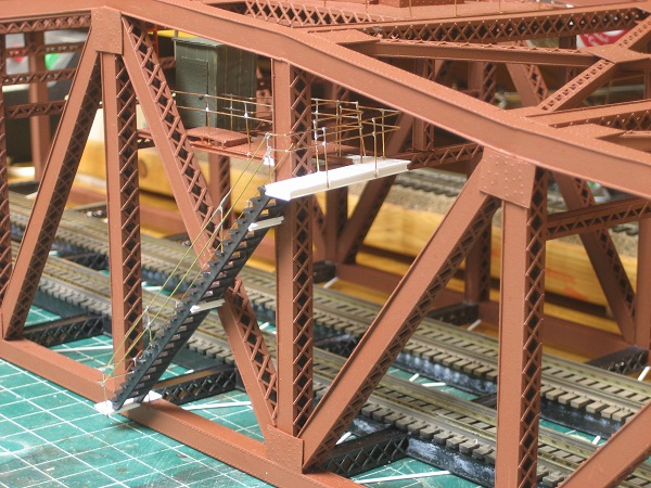 That little house is the interlocking tower and operators control room. It protects that section of the main and controls the bridge. On the system timetables it's known simply as "Draw" tower. And I got some pictures and a small list of detail parts that I used for you Steamtrains. They are all Cal-Scale parts; #2003 Elesco feed water heater, # wp-343 water pipes, and #190-392 antenna support stands.