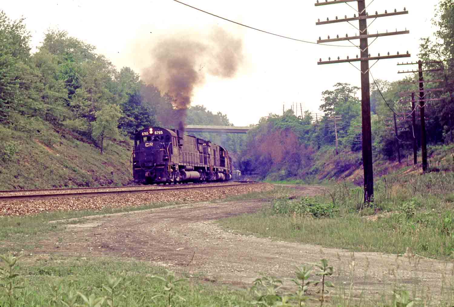 6/13/1977 Eastbound at Highland Cut, MP 37 Fort Wayne Line.