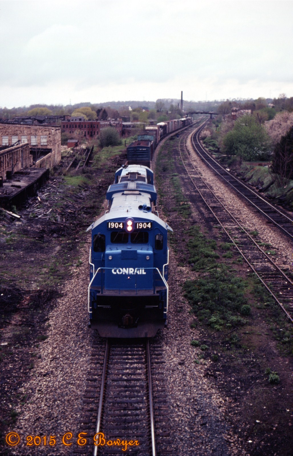 Conrail U33B leads this eastbound at Buckeye, East Palestine, Ohio July, 1978.      Charlie