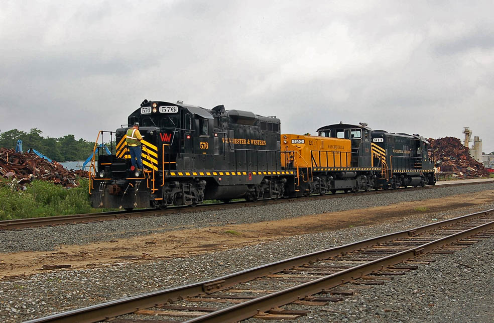Winchester and Western trio at Conrail's yard in Millville, NJ, 7/15/14.