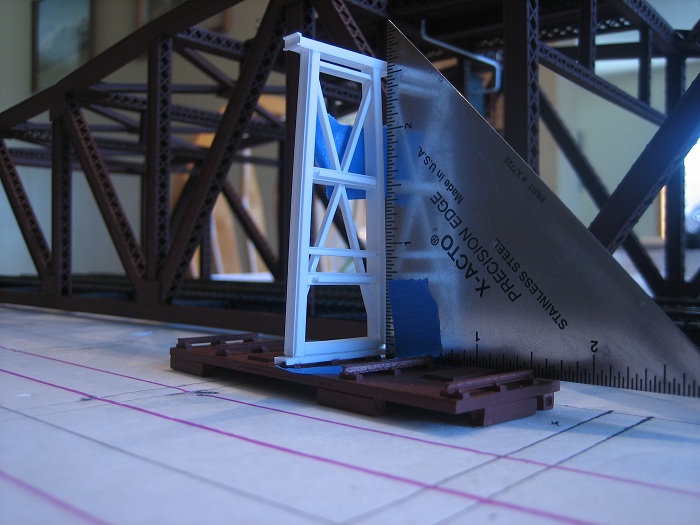 After the tower was dried I held it in place and felt that it seamed too tall for the model. I scaled down this section from the CNJ bridge that is considerably larger than the the bridge that I am building. So I cut off the top section and used just that portion, It's much better proportioned this way.