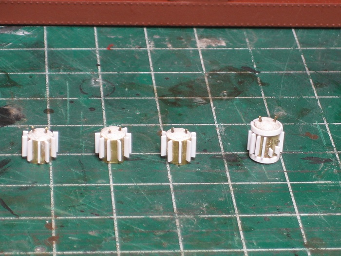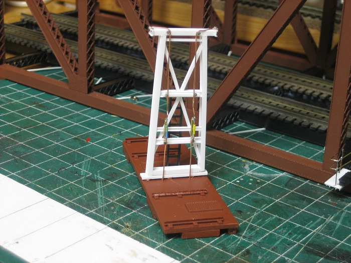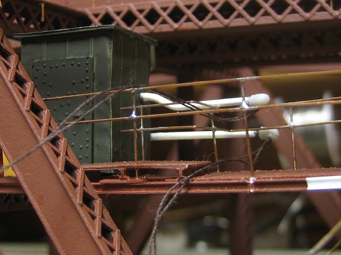 I built the transformers for the bridge from plastic and brass rod.
