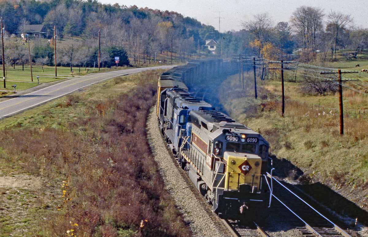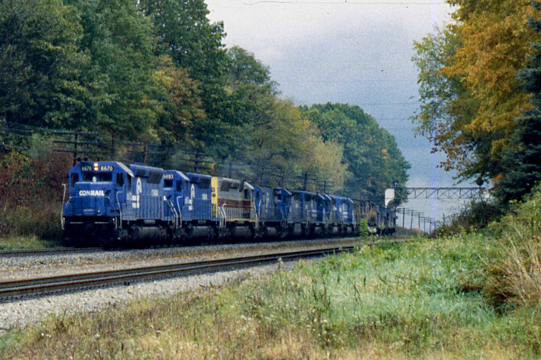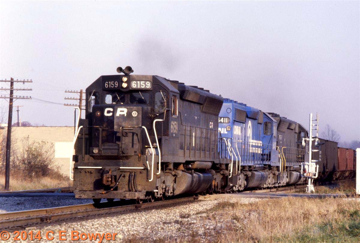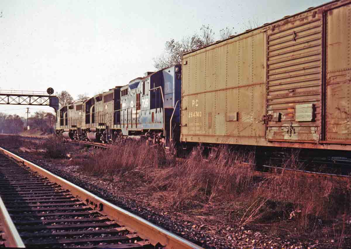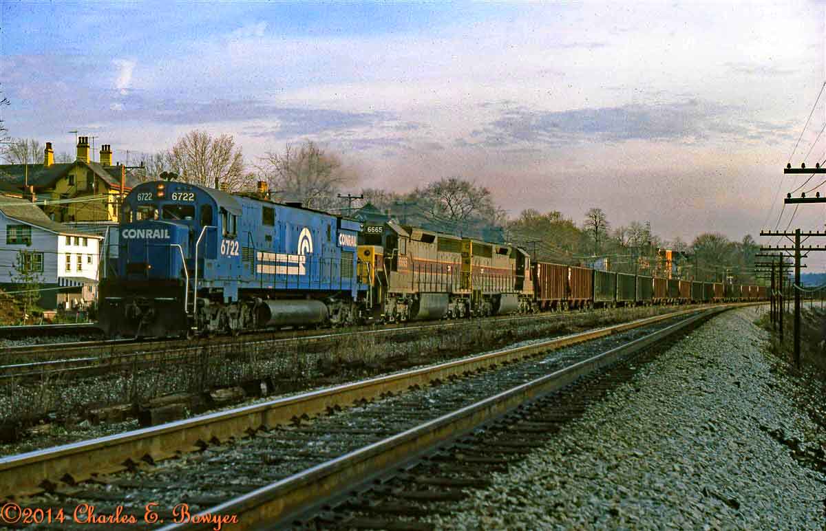 A westbound power balancing move at Pittsburgh Street, Columbiana, Ohio November, 1978.