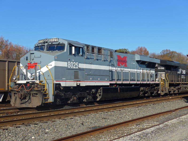 NS 8025, Monongahela Heritage Unit, on coal train NS 506 at Carneys Point, NJ November 16, 2015.
