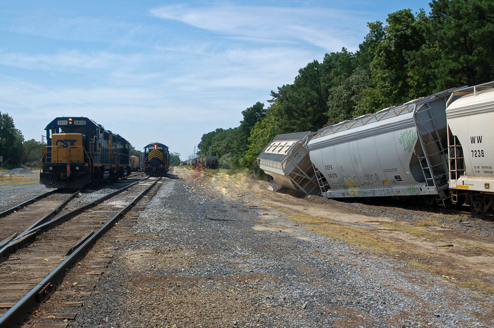 Winchester and Western had a miscommunication, and as a result put two cars on the ground at Conrail's Millville, NJ yard, 7/27/10.