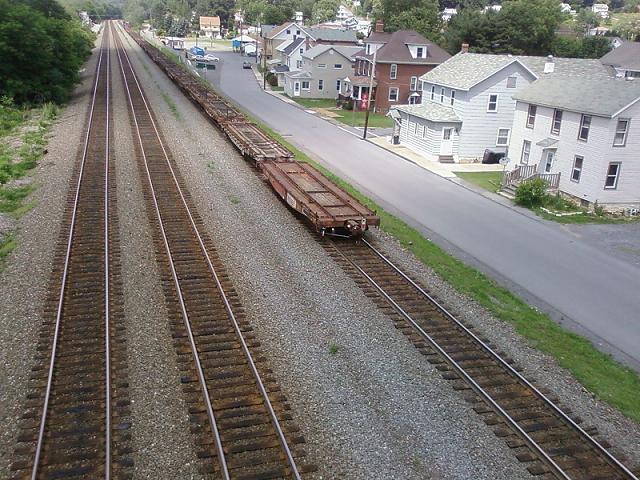 If someone could please tell me what they are I would be happy. Matt, They are flat cars for track maint. vehicles and the square thing in front folds down to form a ramp to unload the machines. Charlie