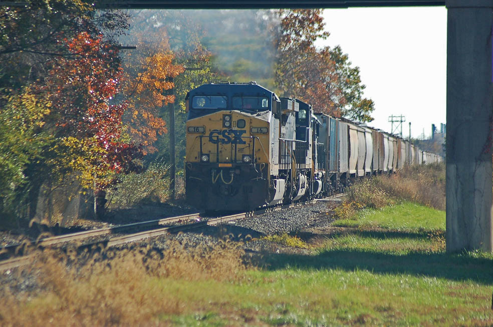 CSX grain train at Conrail's yard in Millville, NJ, 10/31/15.