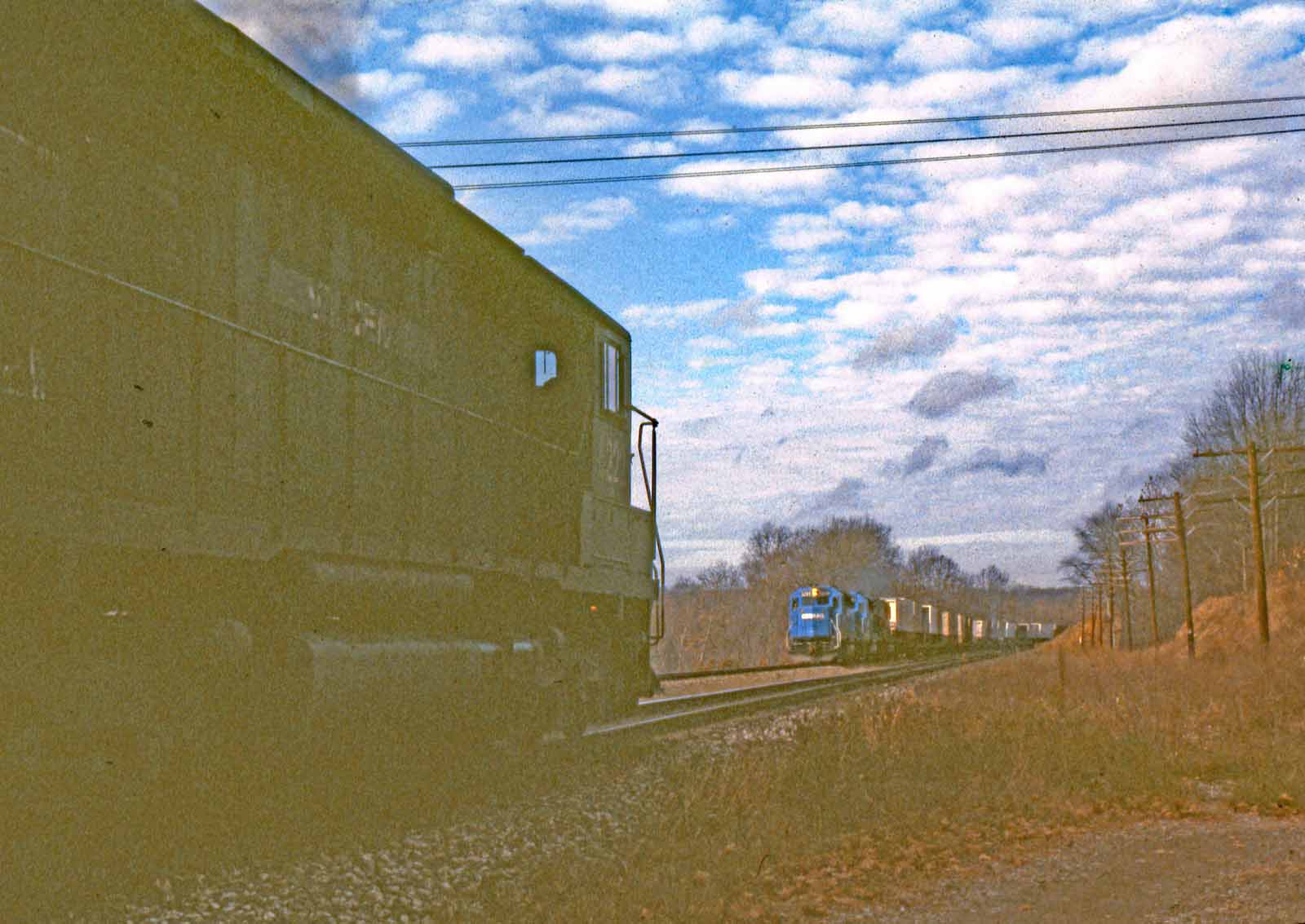 November, 1978 westbound power balancing move at Columbiana, Ohio.      Charlie