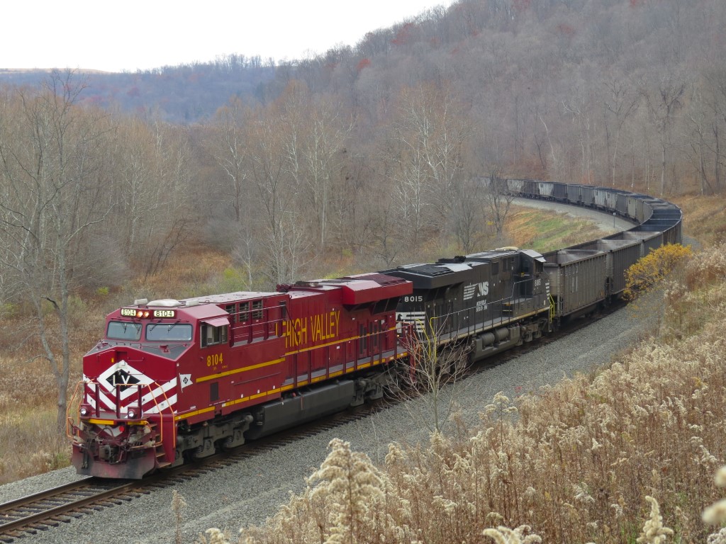 8104 on empty coal train outside of Saltsburg, Pennsylvania on 11/13/2014.
