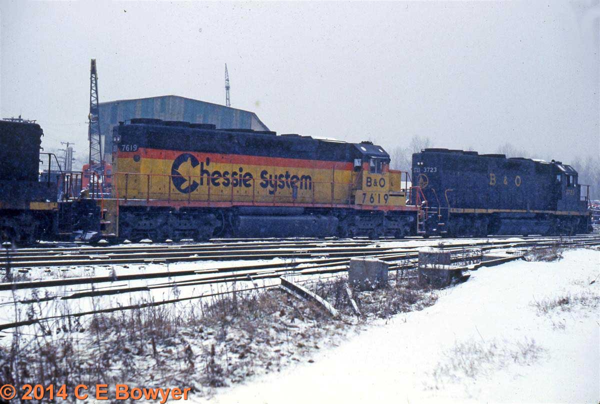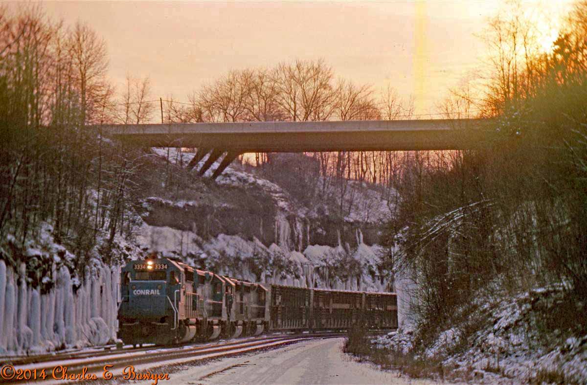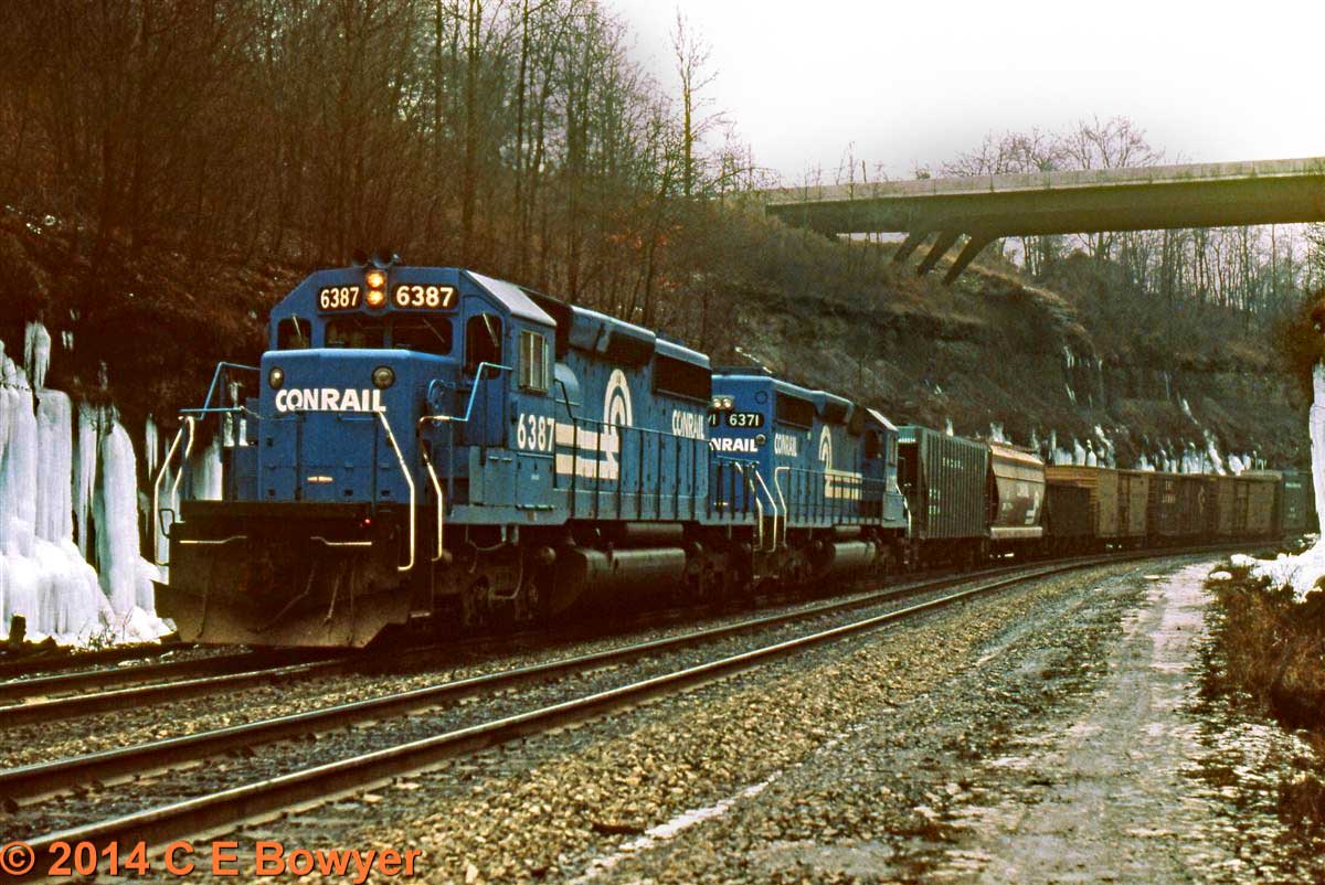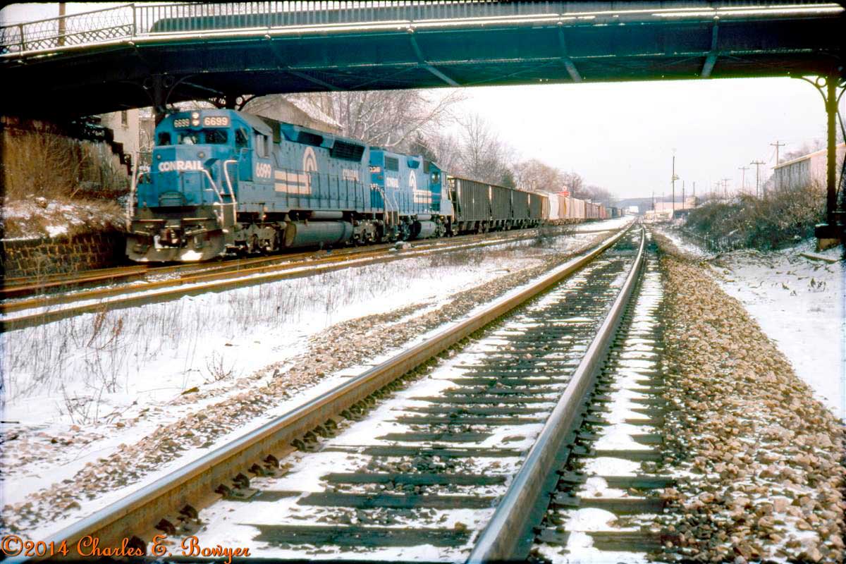 Westbound under the West Street Bridge, East Palestine, Ohio. January 1979.     Charlie