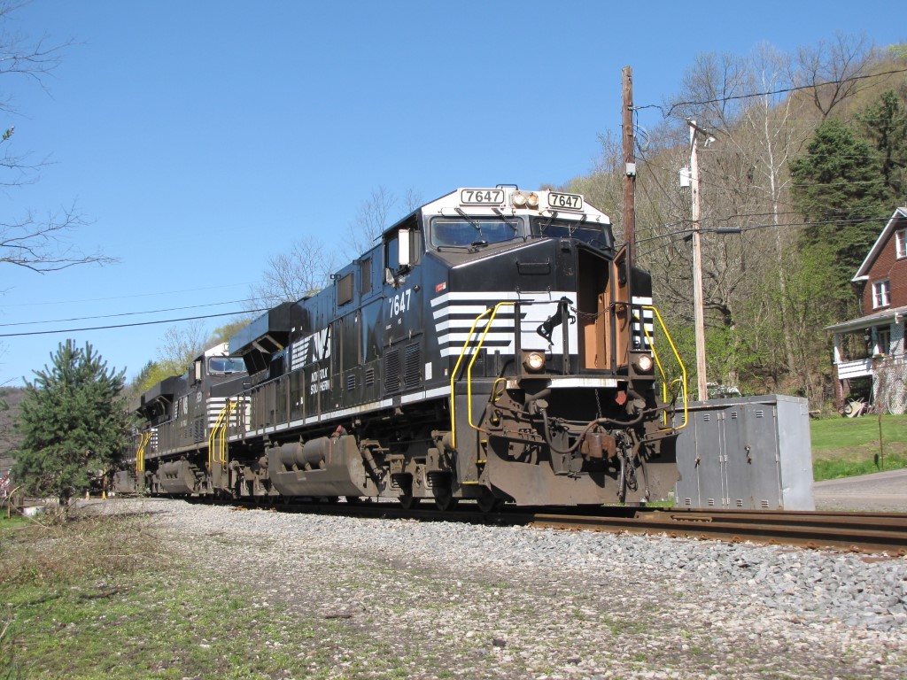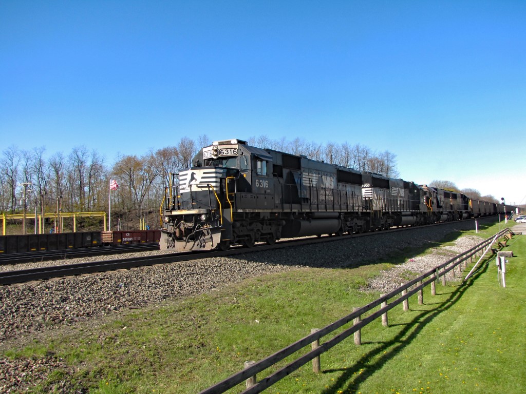 Loaded coal train leaving the Kiski junction Railroad on 4-6-2012.