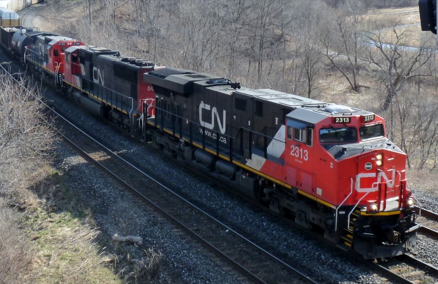 A tank train heads east through Blairsville, Pa. on the Conemaugh Line on 4-17-2016.