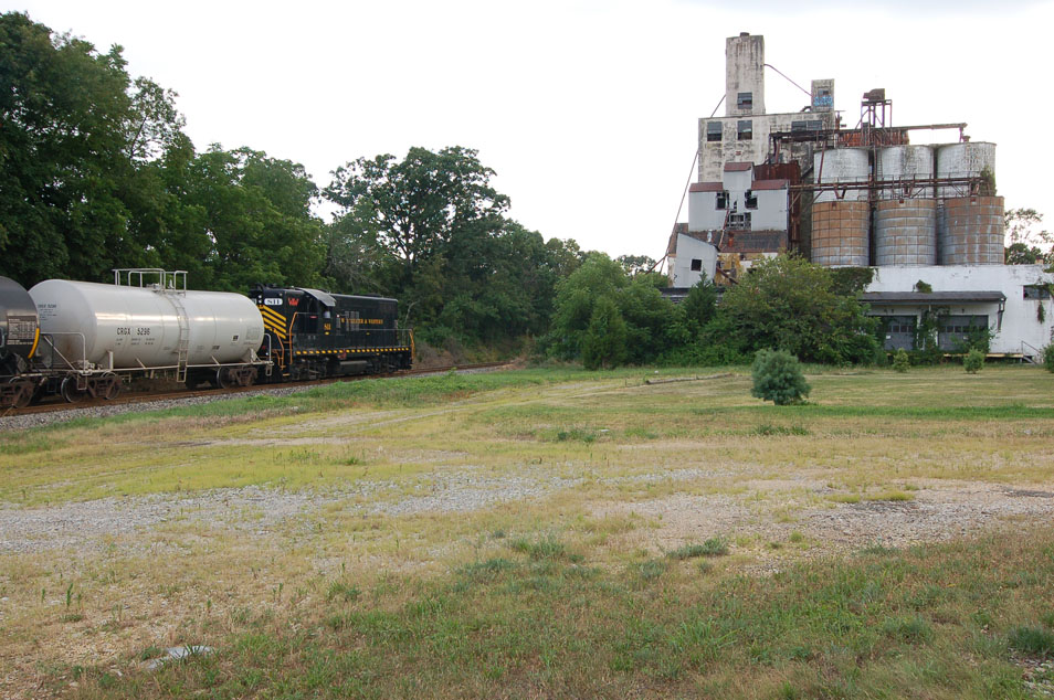 Winchester & Western passes the old Franklin Foods elevators at Pittsgrove Twp, NJ, 7/10/09.