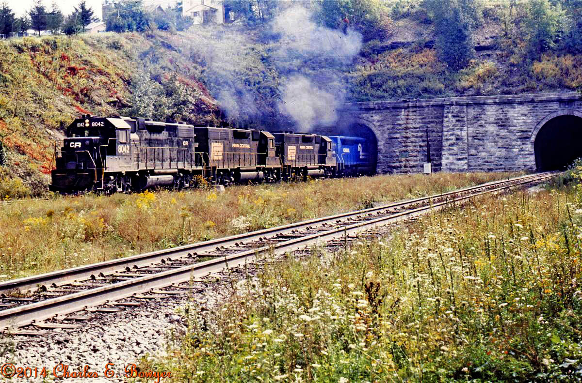 Westbound emerging from the Gallitzin Pa. Tunnel. 9/17/1977