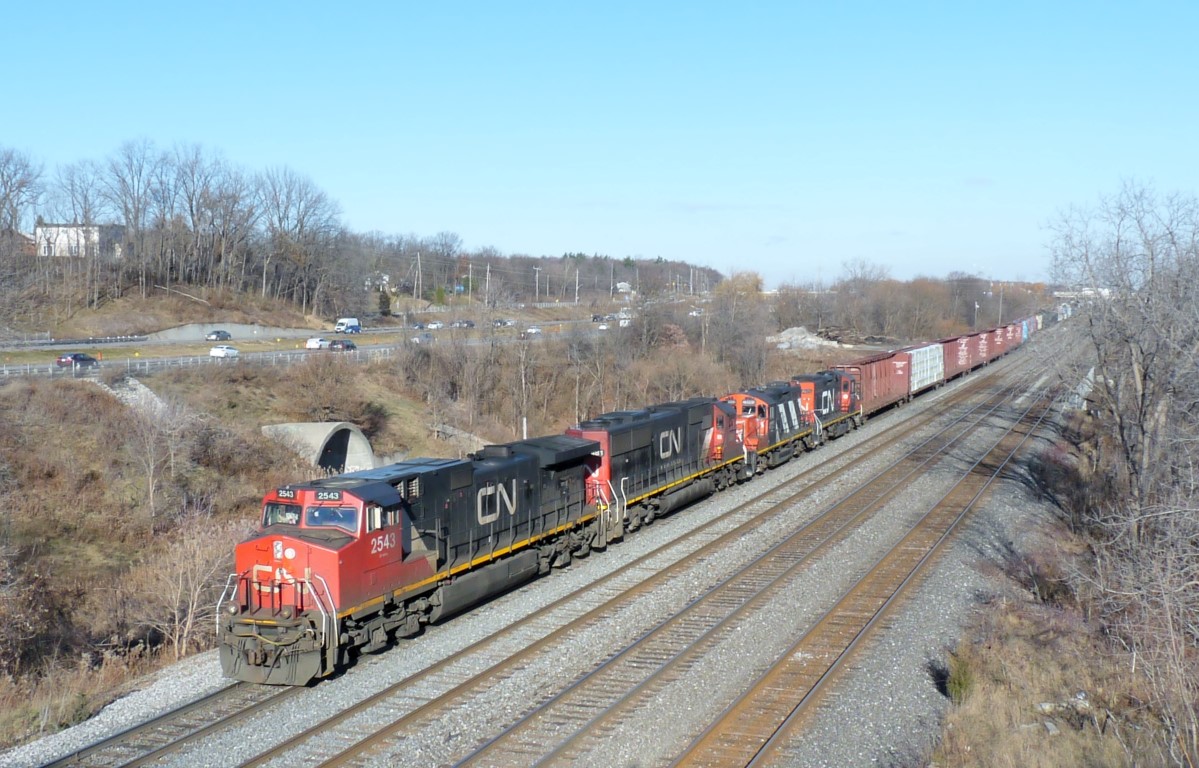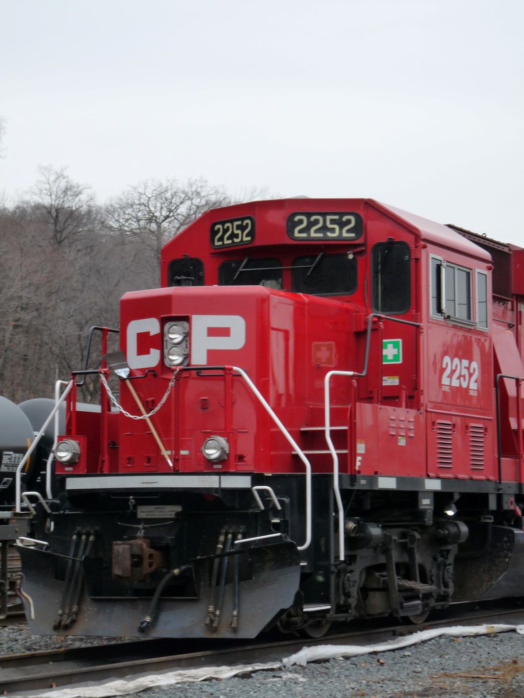 12/9/2014---first sighting of CP's rebuilt GP20 ECO locomotives at Kinnear Yard.