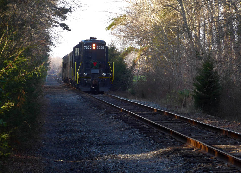 Cape May Sea Shore Lines GP-9 on the rear of the Santa Express at Richland, NJ, 12/6/15.