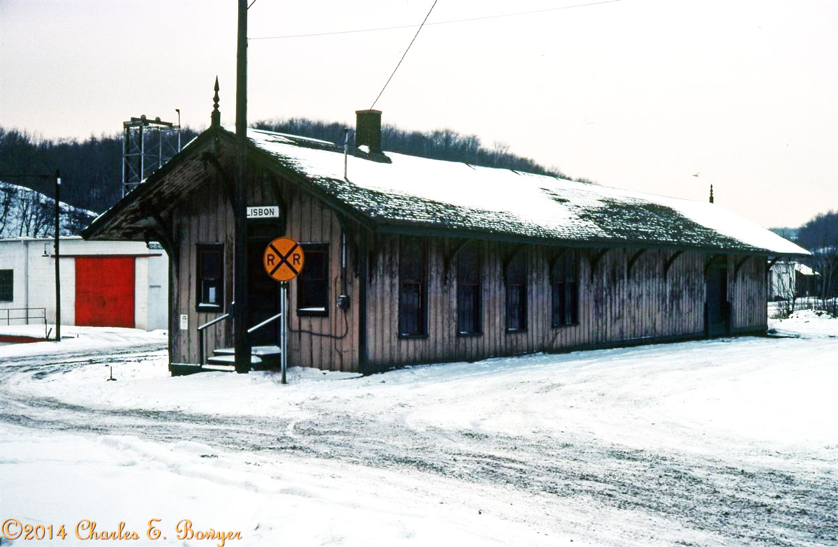 Lisbon, Ohio station. 1/9/1977, When service to Lisbon was discontinued 10 years later the station was moved and is now the Historical Societies museum. Attempts to save the line fell on deaf ears. There was enough business to support a short line.