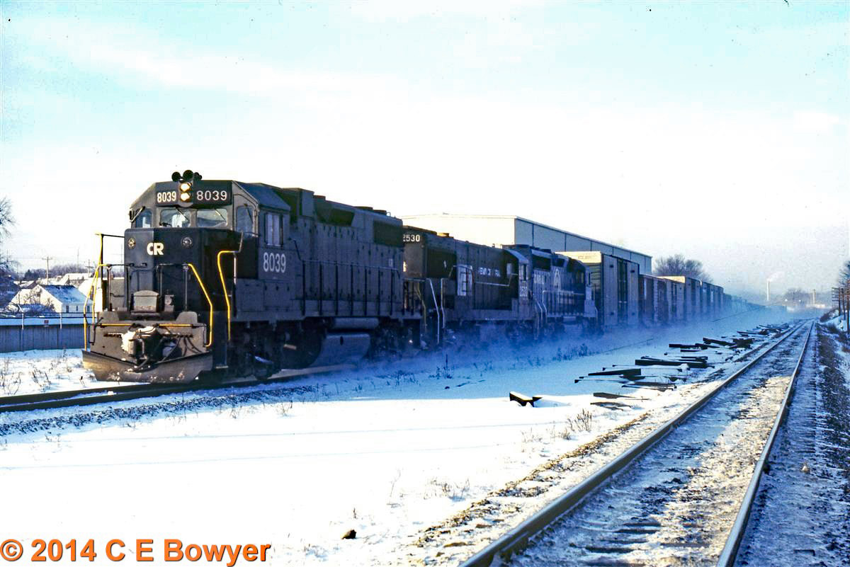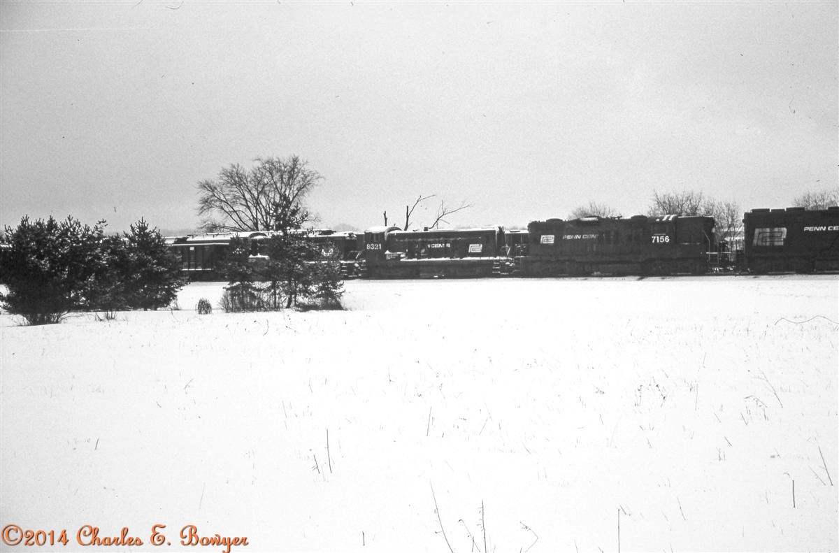 During the January blizzard of '78 Conrail kept the helpers moving to keep the tracks open.  Here are a pair running west at East Palestine, Ohio.