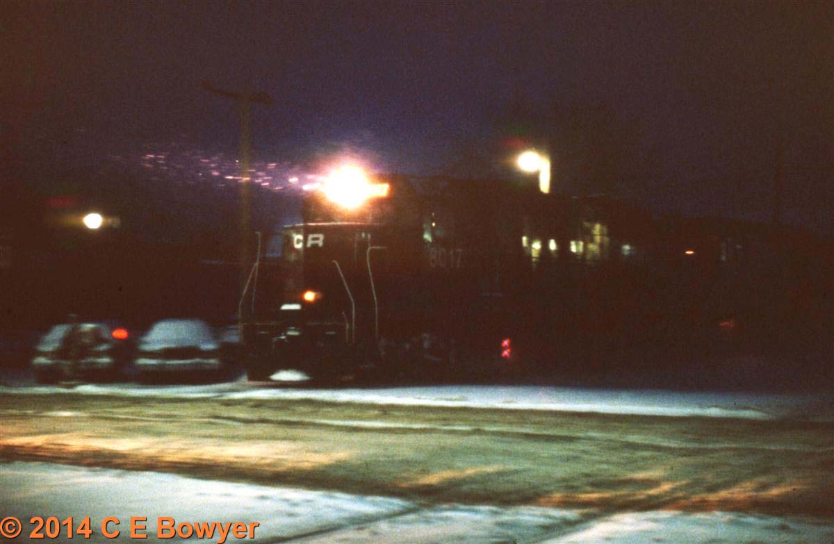 In my youth I would occasionally take a few night shots. This one wasn't too bad for a moving train with ASA 64 Kodachrome at the Market Street crossing in East Palestine, Ohio.