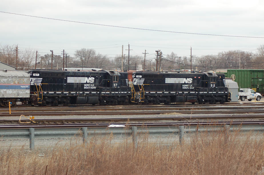 A pair of NS SD9's at Conrail's Pavonia Yard, Camden, NJ, 3/10/09.