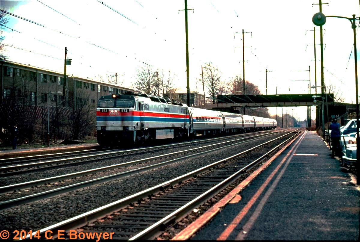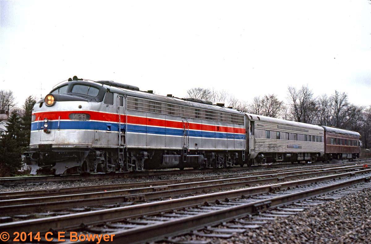 Riding in style in April, 1978 An Amtrak Extra with George Pins PRR 120 on the tail end at "Buckeye" TBS in East Palestine, Ohio