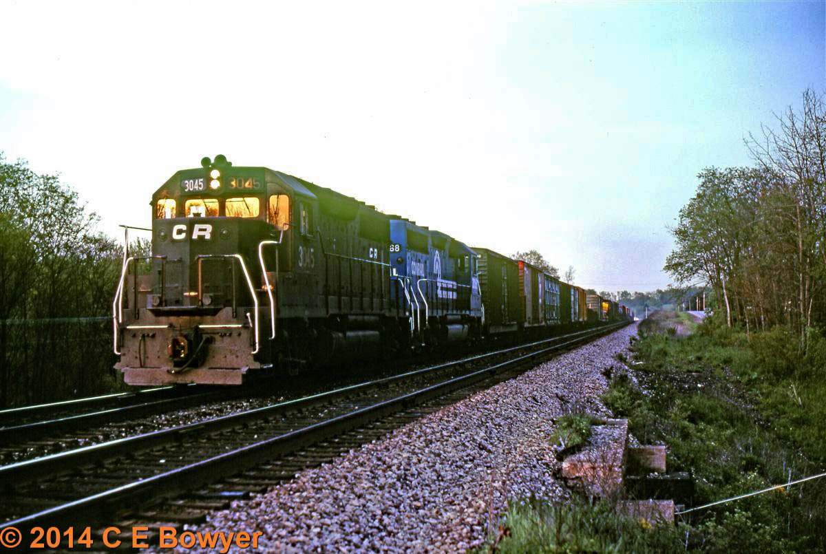 June 1978 westbound crossing Adams Road, between East Palestine and New Waterford, Ohio.