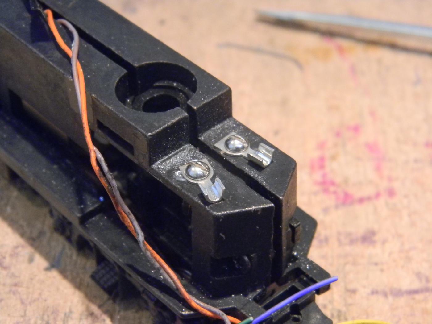 Replaced power pickup by drilling a hole in each side of the chassis and installing two machine screws and nuts with an electric pickup on top (got this idea from Charlie many moons ago and put it into practice).