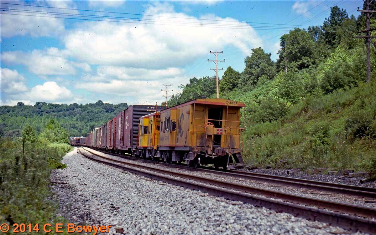 Tail end of a west bound in the Hillsville, Pa area. late July, 1977