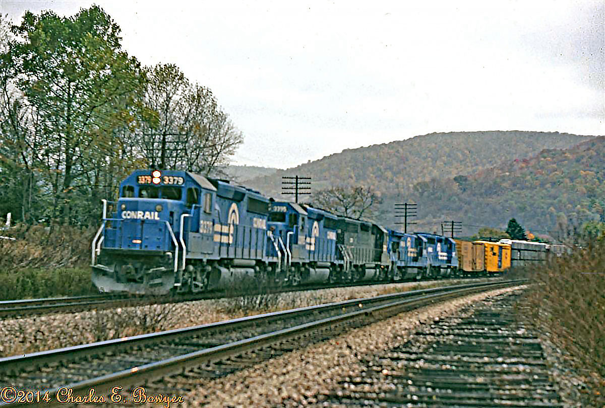 Westbound at Buckeye TBS, East Palestine, Oh. October 1980.