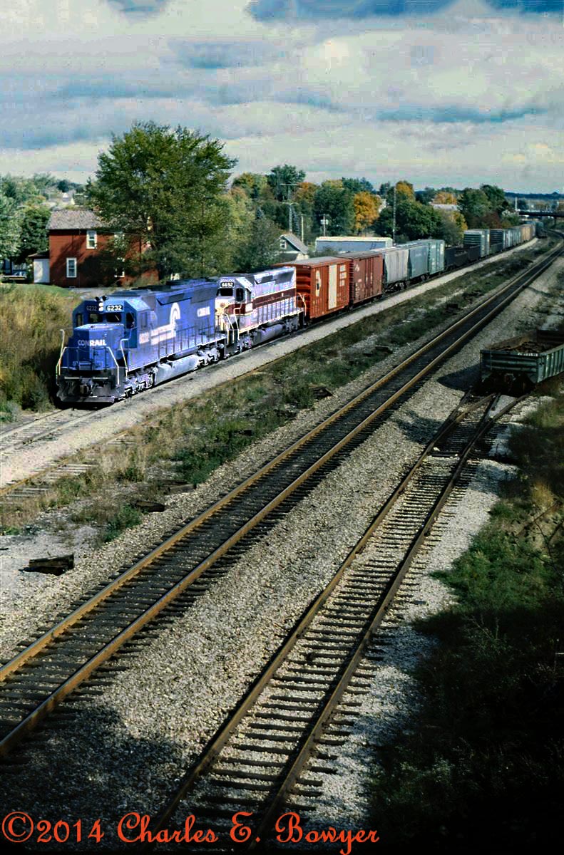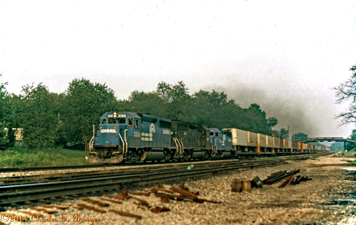 Today's photo from 10/09/1976 west bound Conrail at Market Street, East Palestine, Ohio.