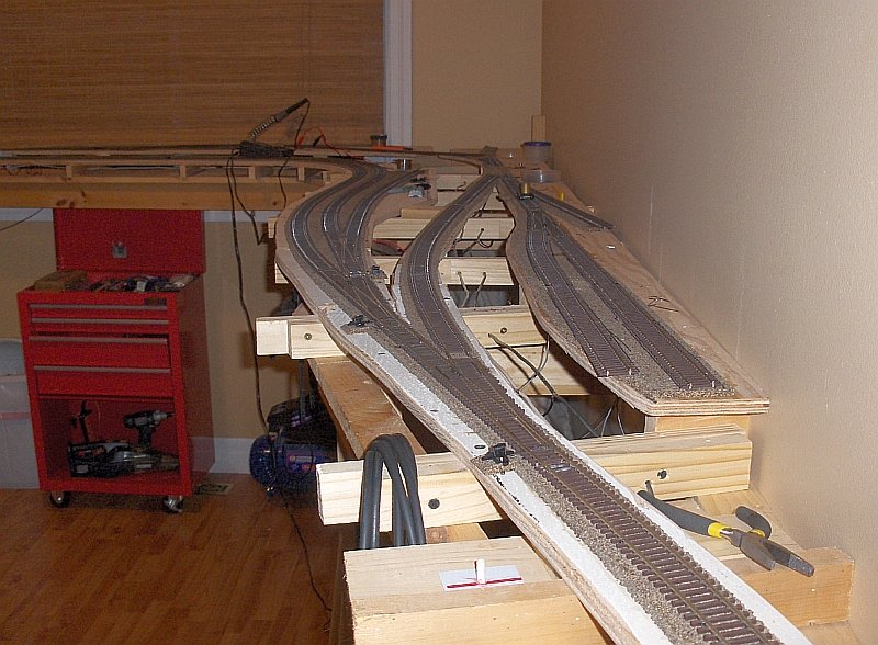 the one really niggling detail is that move to the new room in the basement may be coming soon and although I started the build with the intent of making the layout easily removable it would seem some lapses in judgment or memory have made this somewhat more challenging as I have inadvertently bridged joints and covered critical fasteners on the original framework in the process of modifying the plan..... so it could be tricky moving this thing.