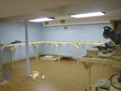 Funny thing...benchwork. Just seems to spring out of nowhere. One day you have an empty room...the next, it's full of benchwork....Nice going...!!!