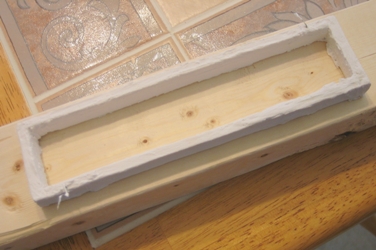 Started the sand bin today. I was trying for the pored concrete look, I took some measurements to see what would look right and built a form. Then I soldered up some music wire to use as re-bar(I was worried about the casting cracking into a million pieces because it's only a scale 18 inches thick in HO ). Next I de-molded the wall by taking the mold apart. I'll let it dry ,sand off the flashing , and paint it latter.