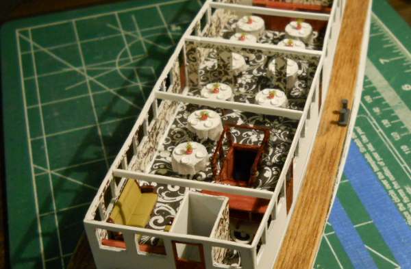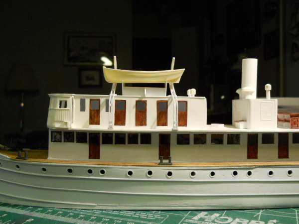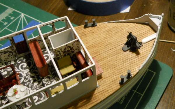 There's still a lot of interior detail left to do before the Bridge deck can be permanently attached, and the stanchions, and railings on the Shelter deck can be built and installed.