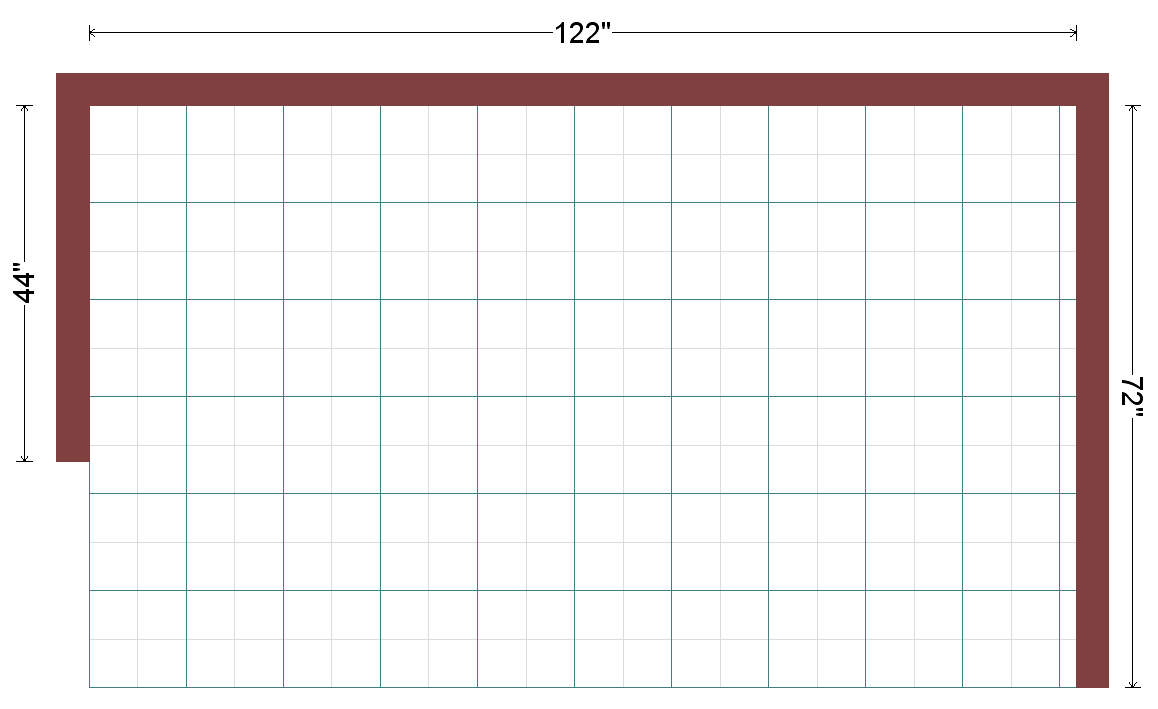 I am looking at a HO layout. The space is reverse C shape. 44" short side, 122" middle side and 72" on the bottom of the C. The wide would likely be 24". Either end of the C could be wider than 24" if it adds value. The reverse C is against walls on the three sides.